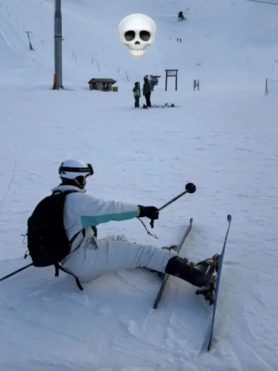 Ο TikToker συνόδευσε το μήνυμα με φωτογραφία από την «έκβαση» της προσπάθειάς του, στην οποία φαίνεται να έχει πέσει στο χιόνι, προσθέτοντας για χιούμορ και ένα εικονίδιο νεκροκεφαλής.