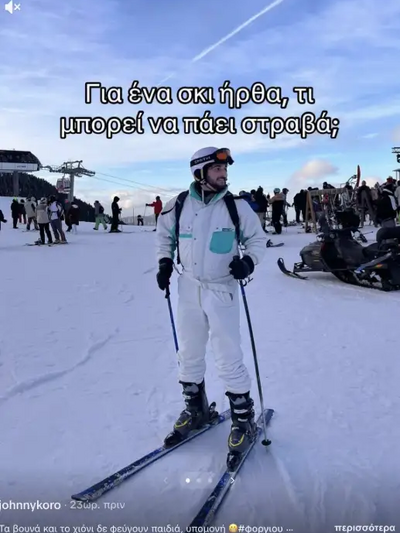 «Πρόσεχε αγόρι μου σε παρακαλώ, γιατί έχει έρθει για σκι στα Καλάβρυτα ο Μητσοτάκης», έγραψε ο πατέρας του σε μήνυμα που ο Johnny Koro δημοσίευσε σε story.