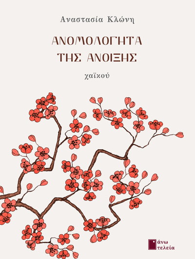 Η Αναστασία Κλώνη και οι εκδόσεις Άνω Τελεία παρουσιάζουν τη συλλογή χαϊκού «Ανομολόγητα της Άνοιξης» την Τετάρτη 28 Ιανουαρίου, ώρα 7:00 μ.μ., στη Στέγη Γραμμάτων Κωστής Παλαμάς (Κορίνθου 241, Πάτρα).