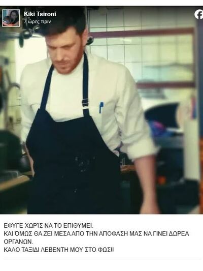 Η μητέρα του, Κική Τσιρώνη, αποχαιρέτησε τον γιο της με μια συγκλονιστική ανάρτηση, εκφράζοντας τον πόνο αλλά και την ελπίδα που γεννιέται μέσα από τη δωρεά οργάνων.
