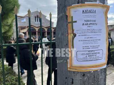 Τα κηδειόχαρτα για τα δύο παιδιά ήταν αναρτημένα δίπλα δίπλα στον περίβολο του Ιερού Ναού όπου έγινε η κηδεία του 19χρονου.