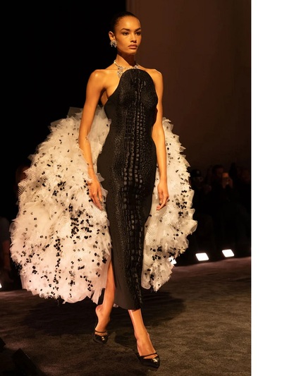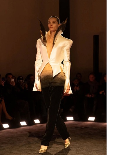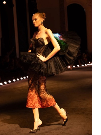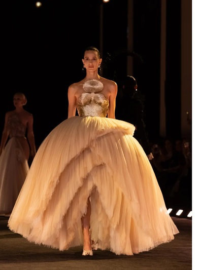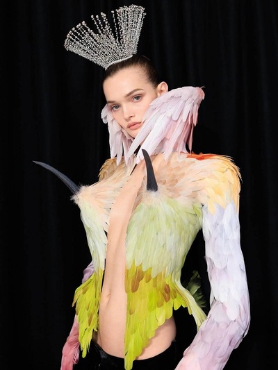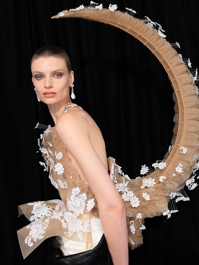 Πάντως, αυτή τη φορά δεν μιλάμε για ρούχα, αλλά για υπερβατικά «ποιήματα». Φτερά, κρινολίνα, κεντήματα, κρόσσια και παραμυθένιες σιλουέτες συνέθεσαν μια από τις πιο συναρπαστικές στιγμές της παγκόσμιας μόδας.