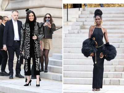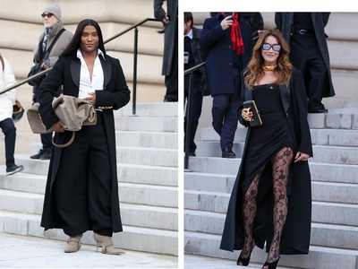 Στην είσοδο την είδαμε με μαύρο σμόκιν παλτό, το οποίο έβγαλε την ώρα της επίδειξης. Μαύρες πανύψηλες πλατφόρμες και έντονο μακιγιάζ (smoky eyes, extra glam eyeliner, pink glossy lipstick) ολοκλήρωσαν την εικόνα της. Ολο το διαδίκτυο αναστατώθηκε από την ταχύτατα ανερχόμενη star, έστω κι αν στο show παράστησαν μεταξύ άλλων το ζεύγος Μπέζος, η Ντέμι Μουρ, η Κάρλα Μπρούνι, η Σοφί Μαρσό, ο Βενσάν Κασέλ, η Τζόντι Τέρνετ Σμιθ, η Αννα Γουίντουρ, ο Λόου Ρόουτς κ.α.