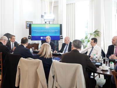 Ο πρωθυπουργός Κυριάκος Μητσοτάκης προήδρευσε το πρωί σε σύσκεψη στο Μέγαρο Μαξίμου, με αντικείμενο την εφαρμογή των μέτρων βιοασφάλειας για την αντιμετώπιση της ευλογιάς των αιγοπροβάτων.