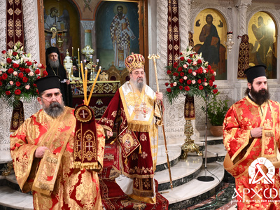 Στον πολυαρχιερατικό εσπερινό το απόγευμα της Δευτέρας, ήταν παρών & ο σεβασμιότατος Μητροπολίτης Αιτωλίας κ. Δαμασκηνός.