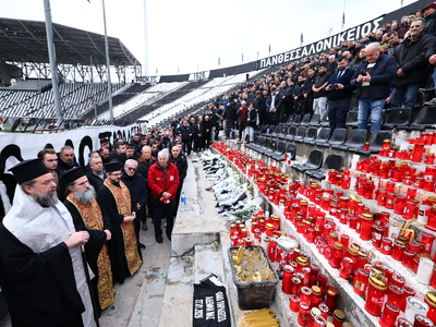 Νωρίτερα, σε κλίμα οδύνης και συγκίνησης, τελέστηκε στην Τούμπα επιμνημόσυνη δέηση για τους νεκρούς στη Ρουμανία, υπό τον μητροπολίτη Θεσσαλονίκης Φιλόθεο, στη Θύρα 4 του γηπέδου.