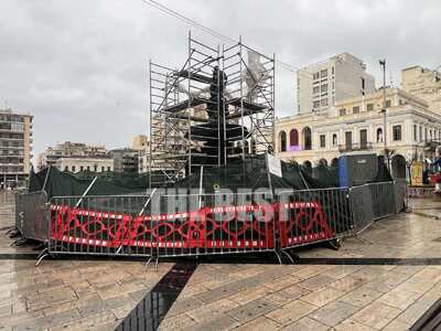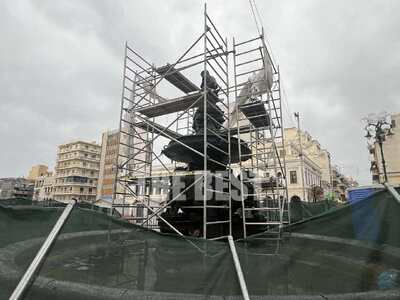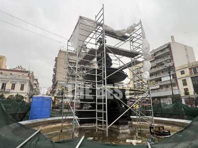 Στο σιντριβάνι έχουν τοποθετηθεί πλέον σκαλωσιές. Το πέρασμα του χρόνου έχει αφήσει τα σημάδια του και στα δύο αναβρυτήρια της πλατείας Γεωργίου και το έργο του Υπουργείου Πολιτισμού για την αποκατάσταση βρίσκεται σε εξέλιξη με τις εργασίες στην παρούσα φάση να γίνονται στο πάνω σιντριβάνι.
