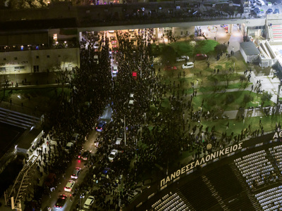 Οι νεκροφόρες έκαναν έναν αργό κύκλο γύρω από το στάδιο και στάθηκαν μπροστά στη Θύρα 4. Εκεί περίμεναν όσοι δεν μπόρεσαν να βρεθούν στο αεροδρόμιο «Μακεδονία», για να πουν κι αυτοί το δικό τους αντίο.