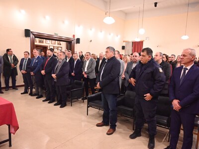 Την πίτα ευλόγησε ο Πανοσιολογιότατος Αρχιμανδρίτης π. Θεόκλητος Παντελίδης, ενώ οι Πρόεδροι των Ενώσεων, στον σύντομο χαιρετισμό τους, ευχήθηκαν μια ασφαλή χρονιά με υγεία, αφιερώνοντας το πρώτο κομμάτι σε όλα τα μέλη των σωματείων τους. Στο πλαίσιο της γιορτής, τιμήθηκαν για το έργο τους κατά το 2025 η Αστυνόμος Α΄ Νικολίτσα Τσεκούρα, για τον υποδειγματικό συντονισμό εκκενώσεων στις πυρκαγιές του Αυγούστου και ο Υπαστυνόμος Α΄ Κωνσταντίνος Γαλάνης, για την εξάρθρωση διεθνών κυκλωμάτων αρχαιοκαπηλίας και τον επαναπατρισμό εθνικών θησαυρών.