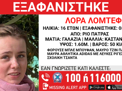 Υπενθυμίζουμε ότι στις 08/1/2026 στις 07:30 το πρωί εξαφανίστηκε από τη περιοχή του Ρίου στην Πάτρα, η Λόρα Λομτέφ, 16 ετών, γερμανικής καταγωγής. «Το Χαμόγελο του Παιδιού» ενημερώθηκε την ίδια μέρα για την εξαφάνιση της ανήλικης και άμεσα προέβη στη δημοσιοποίηση των στοιχείων της. Στις 11/01/26 κατόπιν εισαγγελικής εντολής, προχώρησε στην ενεργοποίηση του μηχανισμού AMBER ALERT HELLAS, καθώς συντρέχουν λόγοι που θέτουν τη ζωή της ανήλικης σε κίνδυνο.