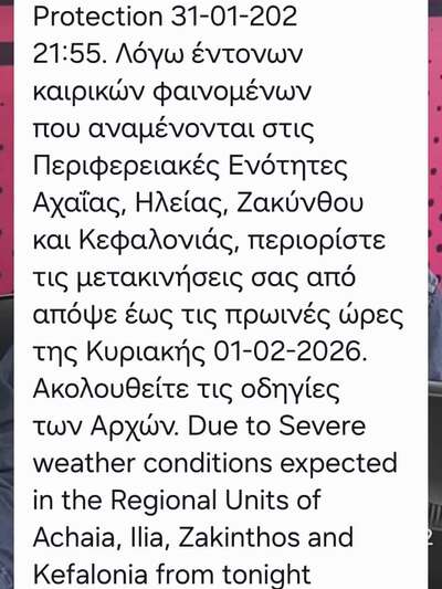 Προειδοποίηση για τους νομούς Αχαΐας και Ηλείας