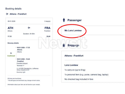 Όπως φαίνεται στο εισιτήριο της Λόρα, έφυγε από το αεροδρόμιο Ελευθέριος Βενιζέλος στις 17:35 και μετά από 3 ώρες και 05 λεπτά πτήσης, έφτασε στο αεροδρόμιο της Φρανκφούρτης.