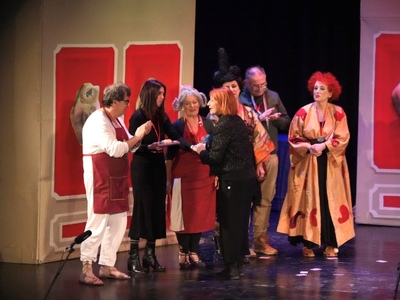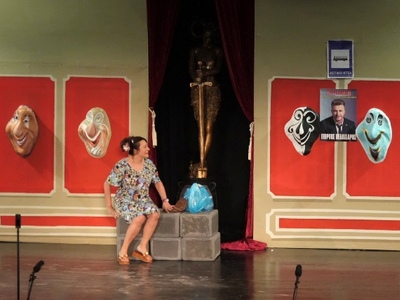 Στην Αφροδίτη Κατσαούνου από την Θεατρική Ομάδα «Υφοποιοί», Πολιτιστικού Συλλόγου Κομποτίου «Νικόλαος Σκουφάς» (2015) για το δρώμενο «Αταίριαστο ραντεβού» από το έργο «Ένα παράξενο ζευγάρι» του Νηλ Σάιμον.
