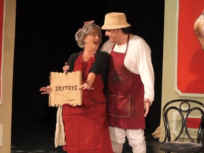 Ο ΚΟΥΤΑΛΙΑΝΟΣ Θεατροποίηση του ομώνυμου τραγουδιού με τη γυναίκα του, να κυνηγά τον παλαιστή με την παντόφλα.
