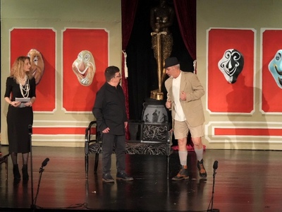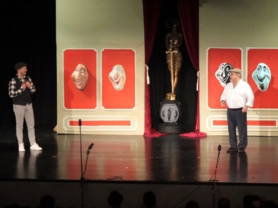 Στον Γρηγόρη Τόλη (Μανώλο) και στον Παναγιώτη Ντούλα (Μαρία Χεσούς) από την Θεατρική Ομάδα «Υφοποιοί», Πολιτιστικού Συλλόγου Κομποτίου «Νικόλαος Σκουφάς» (2015) για το δρώμενο «Αταίριαστο ραντεβού» από το έργο «Ένα παράξενο ζευγάρι» του Νηλ Σάιμον.