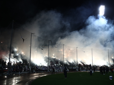 Στις κερκίδες ακούστηκε το σύνθημα «Το μόνο που με ένοιαζε να είμαστε μαζί, σε κάθε γήπεδο σε όλη τη γη», θυμίζοντας πως οι δεσμοί της ομάδας με τον κόσμο της ξεπερνούν τα σύνορα και τα χιλιόμετρα που διανύουν οι οπαδοί για να βρίσκονται δίπλα στον Δικέφαλο.