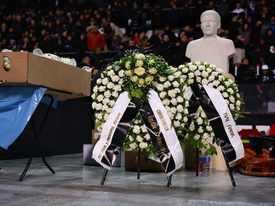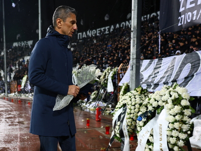 Οι παίκτες, προπονητές και άνθρωποι των αποστολών και των δύο ομάδων πήγαν μπροστά στη Θύρα 4 αφήνοντας στεφάνια και λουλούδια στη μνήμη των επτά νεκρών