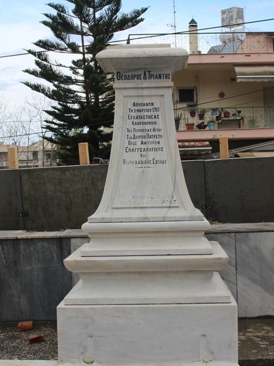 Αιδώς !!! Πάλι, σήμερα, βρέθηκα στο Α΄ Νεκροταφείο της Πάτρας και αγανάκτησα, όταν αντίκρυσα βεβηλωμένο , για μένα, τον τάφο του ευεργέτη της Πάτρας Θεόδωρου Τριάντη. Για δεύτερη φορά διαπίστωσα την περιφρόνηση, παντελώς, των αρχόντων και υπευθύνων για το Α’ Νεκροταφείο και κατ’ επέκταση , βέβαια, για την ιστορία της πόλης μας . Δεν ξέρω, αν υπάρχει , ακόμη και στην Ελλάδα, πόλη, η οποία καταστρέφει την ιστορική της μνήμη, όπως συμβαίνει στην πόλη μας τόσο πολύ συχνά, χωρίς να ανησυχούμε. Οι λόγοι της αγανάκτησής μου είναι δύο: Ο πρώτος λόγος είναι ιστορικός. Ο Θεόδωρος Τριάντης άφηνε την τεράστια για την εποχή περιουσία του, καθώς δεν είχε και απογόνους, η οποία ανερχόταν στο 1.500.000 δρχ. προκειμένου να γίνει Επαγγελματική σχολή.