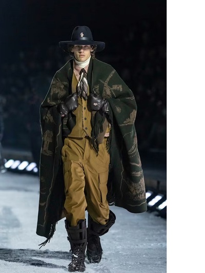 Στα 80 looks κρόσσια, καρό, καπέλα, μαντήλια, κάπες- κουβέρτες, το φύλλο της λεύκας προκάλεσαν το χειροκρότημα των 350 καλεσμένων σε ύψος 2.400 μέτρων. Αλλωστε δεν μιλάμε για μια συνηθισμένη επίδειξη αλλά για μια iconic performance που «άνοιξε» με το super model Τζίτζι Χαντίντ.