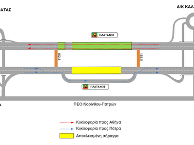Για την εκτέλεση των εργασιών, απαιτείται ο αποκλεισμός του κλάδου προς Πάτρα