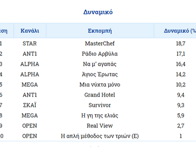 Υψηλές επιδόσεις σημείωσαν επίσης το «Ράδιο Αρβύλα» και ο «Άγιος Έρωτας», επιβεβαιώνοντας τον έντονο ανταγωνισμό ανάμεσα σε ψυχαγωγία και μυθοπλασία.