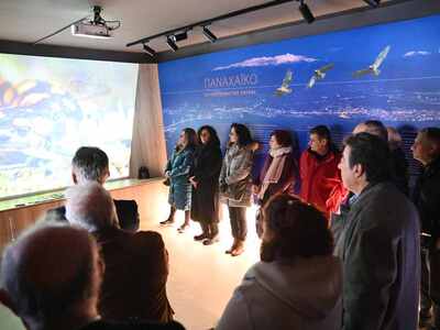 Ακολούθησε ξενάγηση στον εκθεσιακό χώρο από τον Κωνσταντίνο Κωνσταντακόπουλο, ο οποίος παρουσίασε τα νέα μέσα και δυνατότητες του Κέντρου, που αναδεικνύουν και προβάλλουν την σπάνια βιοποικιλότητα του Παναχαϊκού όρους.