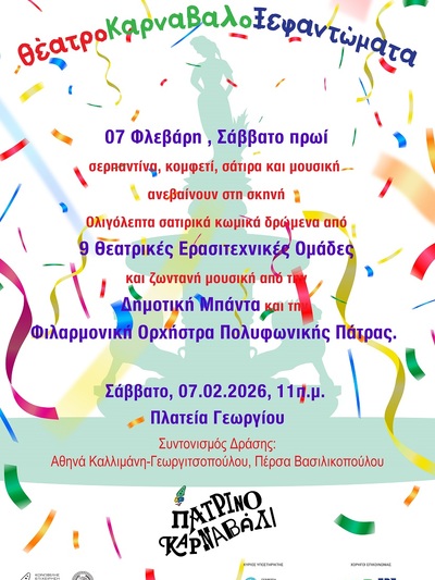 ΘέατροΚαρναβαλοΞεφαντώματα Σάββατο, 7 Φεβρουαρίου 2026, 11πμ-2μμ