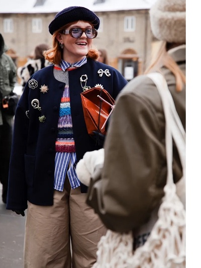 Σύμφωνα με τη Vogue επιτυγχάνεται «touch eccentric but never overworked…» Και συμφωνούμε. Οι Σκανδιναβές υιοθετούν τα trends με έξυπνα προσωπικά στοιχεία- π.χ. αναπάντεχες προσθήκες χρωμάτων, εμβόλιμα vintage αξεσουάρ, καρφίτσες και charms, πολλά καπέλα όπως τα πολύ επίκαιρα «pillow» και σκουφιά σαν την balaklava. Αγαπούν πολύ τα καρό, τα animal prints, τις περίεργες φόρμες παπουτσιών και την πολυφωνία στις τσάντες.
