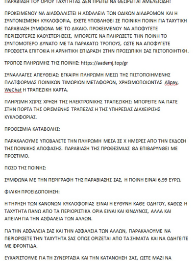 Με νέο μήνυμα SMS που αποστέλλεται σε κινητά τηλέφωνα, επιτήδειοι προσπαθούν να εξαπατήσουν τους πολίτες μέσω ψευδών ειδοποιήσεων περί δήθεν επιβολής «ποινής» ή «προστίμου» για υπέρβαση ορίου ταχύτητας.