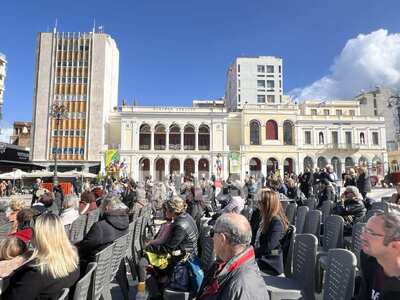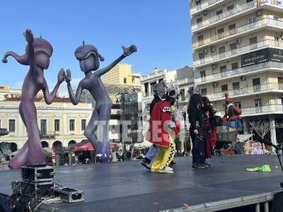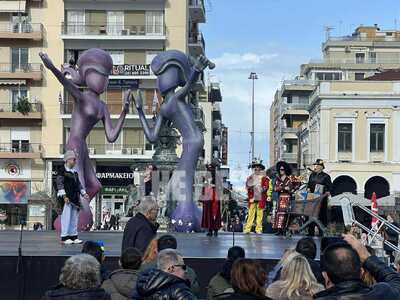 Ένα πρωινό γεμάτο σάτιρα, γέλιο και μουσική ζει το κέντρο της Πάτρας, καθώς το καρναβάλι «ανεβαίνει» στη σκηνή και η Πλατεία Γεωργίου μετατρέπεται σε ανοιχτό θέατρο ξεφαντώματος.
