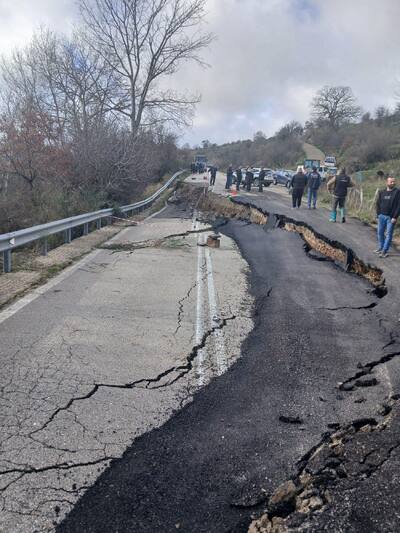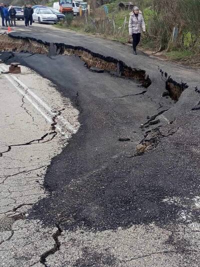 Ο δρόμος «βούλιαξε» στην κυριολεξία αφού το οδόστρωμα στο συγκεκριμένο σημείο έχει υποχωρήσει σε ύψος άνω του ενός μέτρου σε μεγάλο μήκος…