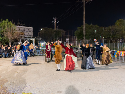 Το Χορευτικό Τμήμα του Δήμου Πατρέων εντυπωσίασε για μια ακόμη φορά και τα μέλη του ντυμένα με εξαιρετικές παραδοσιακές φορεσιές παρουσίασαν το αποκριάτικο δρώμενο της Νάουσας «Γενίτσαροι και Μπούλες» αλλά και τις «Φουστάνες Σκοπέλου».