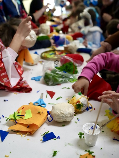 Παράλληλα μεγάλο ήταν το ενδιαφέρον των μικρών για τα εργαστήρια που συνδύασαν τη διασκέδαση και την εκπαιδευτική διαδικασία: εργαστήρια κατασκευής καρναβαλικής φιγούρας για κουκλοθέατρο από το καλλιτεχνικό εργαστήριο ARisTi’s LAB της Αρίστης Μπελαβγένη και εκπαιδευτικό εργαστήριο καρναβαλικών κατασκευών, με περιβαλλοντική ευαισθησία από τη Δομή Προώθησης Πολιτιστικής Κληρονομιάς του Δήμου Πατρέων.
