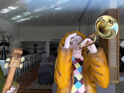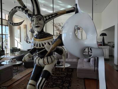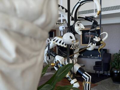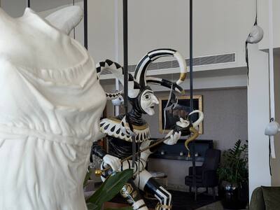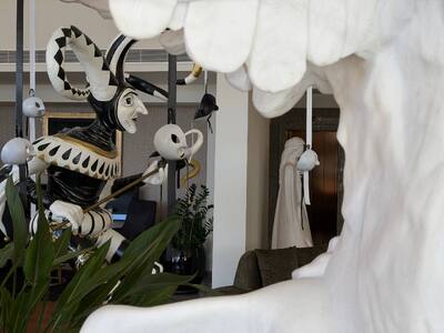 Τα ξενοδοχεία της Πάτρας είναι η βιτρίνα της πόλης για τους επισκέπτες και εκεί επίσης εντοπίζουμε ιδιαίτερες επιλογές για την καρναβαλική διακόσμηση. Το thebest εντόπισε ίσως ένα από τα πιο εκλεπτυσμένα lobby ξενοδοχείου. Το ξενοδοχείο MyWay δεν έχει στολίσει απλά γιορτινά τον προθάλαμό του. Έχει δημιουργήσει καρναβαλική τέχνη, με τα στοιχεία που φιλοξενεί στο lobby του και κυρίως με τον τρόπο που τα έχει χωροθετήσει σε αυτό.