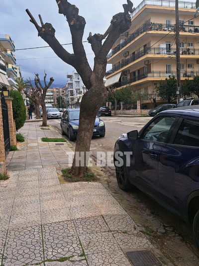 Αυτή είναι η οδός Καζαντζάκη στην Αγυιά της Πάτρας. Μέχρι και πριν λίγες ώρες, όταν την κοίταζες από μακριά, έβλεπες δυο καταπράσινες σειρές δέντρων στα δεξιά και τα αριστερά του δρόμου. Αυτά, μέχρι πριν λίγες ώρες.
