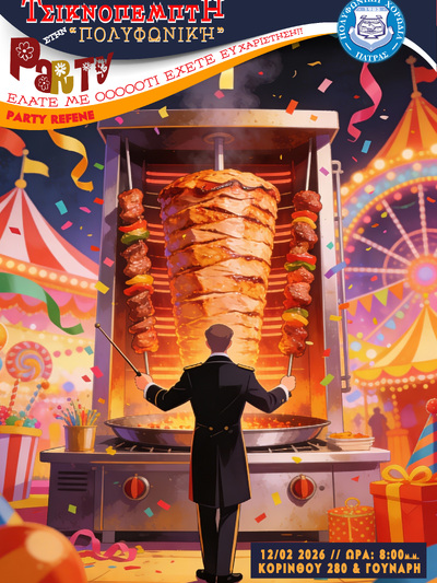 Την Τσικνοπέμπτη 12-2, η «Πολυφωνική Χορωδία», όπως κάθε χρόνο και σύμφωνα με το έθιμο, οργανώνει για τα μέλη της στις εγκαταστάσεις της, στην οδό Κορίνθου 280 και Γούναρη για μετά τις 8 το βράδυ, το παραδοσιακό γλέντι της ημέρας, με φαγητά, ποτά, μουσική, χορό και πολλές εκπλήξεις.