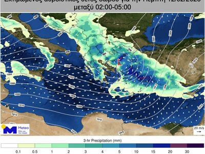 Σημειώνεται ότι τις βραδινές ώρες της Τετάρτης 11/02 και πρώτες πρωινές ώρες της Πέμπτης 12/02 βροχές και τοπικές καταιγίδες αναμένονται και στην Αττική, όπου πρόσκαιρα τα φαινόμενα είναι πιθανό να είναι κατά τόπους έντονα και οι καταιγίδες είναι πιθανό να συνοδεύονται από χαλαζοπτώσεις.