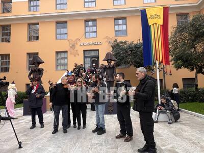 Στην κάτω πόλη όμως και συγκεκριμένα στο Δημαρχείο , λίγο νωρίτερα οι μουσικές ξεκίνησαν και μια πομπή κατευθύνθηκε στο κέντρο.