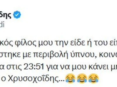 «Επειδή ένας αστυνομικός φίλος μου την είδε ή του είπαν συνάδελφοι του γελώντας, ότι εμφανίστηκε με περιβολή ύπνου, κοινώς robe de chambre στο Αστυνομικό τμήμα στις 23:51 για να μου κάνει μήνυση και έγινε ρεζίλι, πρέπει να παραιτηθεί ο Χρυσοχοΐδης…».