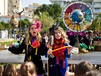 Καθ΄ όλη τη διάρκεια της Καρναβαλούπολης ανάμεσα σε μικρούς και μεγάλους προκαλούσαν βλέμματα και θαυμασμό κάνοντας εντυπωσιακά ζογκλερικά, καλλιτέχνες του τσίρκου από την ομάδα Saltibagos: ξυλοπόδαρη, μπάλα ισορροπίας, ζογκλέρ, ποδηλάτης και ο ξυλοπόδαρος Τζίτζικας, η μασκότ του Καρναβαλιού των Μικρών (Μαρία Βάρσου).
