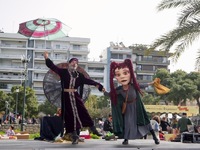 Στην παράσταση θεάτρου μαριονέτας «Τεχνοβάτες» από την ομάδα κουκλοθέατρου «Μαριονέτες Τζίκας», παρουσιάστηκαν συνοδεία των κατάλληλων μουσικών μαριονέτες με χαρακτήρες από όλο τον κόσμο που με τα μαγικά τους μεταμόρφωσαν τα γέλια των παιδιών σε φυσαλίδες μεταφέροντας σε όλο τον κόσμο τη χαρά και την ελπίδα του Καρναβαλιού των Μικρών. Στο τέλος ζωντάνεψε η γιγαντόκουκλα Λεβάρ, ένας δράκος γεμάτος συναισθήματα μέσα από τις ζωηρές εκδηλώσεις των μικρών.