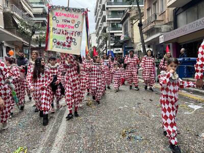 Χρώματα, χαμόγελα, φαντασία και καρναβαλική διάθεση πλημμύρισαν τους κεντρικούς δρόμους της Πάτρας Η μεγάλη παρέλαση του Καρναβαλιού των Μικρών ξεκίνησε από την οδό Γούναρη παρά το γεγονός ότι ο καιρός δε στάθηκε μεγάλος σύμμαχος νωρίτερα.