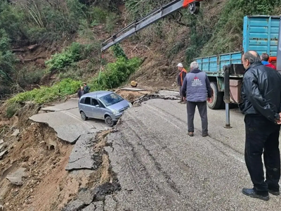 Ο δρόμος παρουσίασε καθίζηση 60 μέτρων ενώ από θαύμα σώθηκε οδηγός που ακινητοποιήθηκε στο συγκεκριμένο σημείο, πάνω στον δρόμο που μόλις είχε καταρρεύσει.