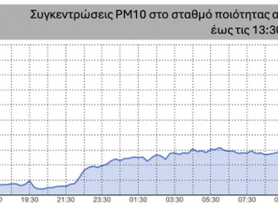 31/01-01/02/2026, με μέγιστη τιμή αιωρούμενων σωματιδίων (PM10) στα 434 μικρογραμμάρια ανά κυβικό μέτρο αέρα