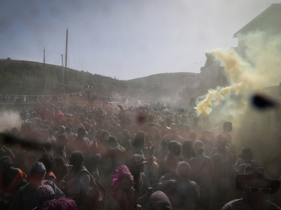 Την Καθαρά Δευτέρα το Γαλαξίδι μετατρέπεται σε σκηνικό έντονης, οργανωμένης ανατροπής. Τα Αλευρομουτζουρώματα, το πιο γνωστό αποκριάτικο έθιμο της πόλης, συγκεντρώνουν χιλιάδες επισκέπτες στο λιμάνι. Οι συμμετέχοντες φορούν παλιά ρούχα, προστατευτικά γυαλιά και καλύπτουν το πρόσωπό τους με μαντήλια. Σακούλες με αλεύρι και φυσικές χρωστικές ανοίγουν και μέσα σε λίγη ώρα ο αέρας γεμίζει σκόνη, χρώμα και θόρυβο. Το έθιμο έχει ρίζες στον 19ο αιώνα και, σύμφωνα με την τοπική παράδοση, συνδέεται με ναυτικές γιορτές πριν από τη Σαρακοστή. Δεν υπάρχει άρμα, δεν υπάρχει οργανωμένη παρέλαση- το δρώμενο εκτυλίσσεται αυθόρμητα αλλά με σαφή όρια στον χώρο του λιμανιού, ενώ ο δήμος μεριμνά για την ασφάλεια και τον καθαρισμό μετά τη λήξη.