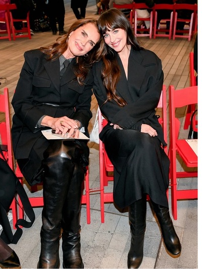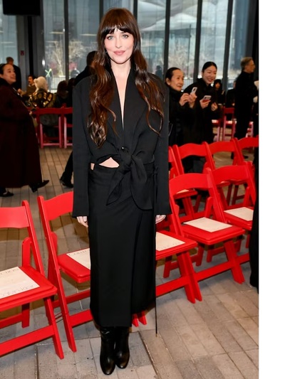 Η 36χρονη Ντακότα Τζόνσον- ακλόνητο beauty & style icon των τελευταίων ετών- διάλεξε την ασφαλή οδό του total black ως front row καλεσμένη στον Calvin Klein. Aνέδειξε ένα μινιμαλιστικό σύνολο του label, σακάκι δεμένο σαν πουκάμισο και μίντι φούστα μαζί με μπότες σε ιδιαίτερο σχήμα. Και όπως αποδείχθηκε της πήγαιναν πολύ, κόντρα στο πιο… crazy και πληθωρικό βεστιάριο του φίλου της Alessandro Michele.