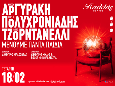 Οι αγαπητοί ερμηνευτές Μπέσσυ Αργυράκη, Γιώργος Πολυχρονιάδης και Λάκης Τζορντανέλλι πρόκειται να παρουσιάσουν την μουσική παράσταση «Μένουμε πάντα παιδιά», το απόλυτο αποκριάτικο πάρτι με ποπ επιτυχίες σε σκηνοθεσία του Δημήτρη Μαλισσόβα την Τετάρτη 18 Φεβρουαρίου 2026 στις 21:00 στο Θέατρο Παλλάς της οδού Βουκουρεστίου στην Αθήνα.