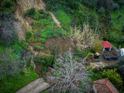 Σε κατάσταση πλήρους αποκλεισμού παραμένει το Μαζαράκι στην Ηλεία καθώς η κατολίσθηση στην περιοχή έχει κόψει τους δυο δρόμους πρόσβασης στο χωριό.