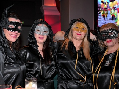 Τα μυστηριακά μαύρα ντόμινα των κυριών συνδυασμένα με αποκριάτικα αξεσουάρ γέμισαν την πίστα. Οι αγαπημένοι Πατρινοί καλλιτέχνες Γιώργος Παράμερος, Φαίη Κοτρώτσου και Κάτια Ορφανού άνοιξαν δυναμικά το live μουσικό πρόγραμμα, ξεσηκώνοντας τον κόσμο να χορέψει με σστείρευτο κέφι σε ιδιαίτερη ατμόσφαιρα. Ακολούθησε η εμφάνιση των guests Γιάννη Γιοκαρίνη και Νίκoυ Ζιώγαλα που ερμήνευσαν τις επιτυχίες τους και όχι μόνο.