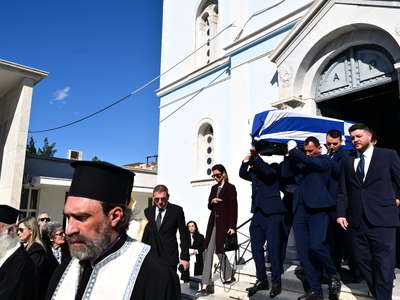 Δημοσία δαπάνη τελέστηκε σήμερα στο Α' Νεκροταφείο Αθηνών η εξόδιος ακολουθία για την Άννα Ψαρούδα - Μπενάκη που έφυγε από τη ζωή σε ηλικία 92 ετών.